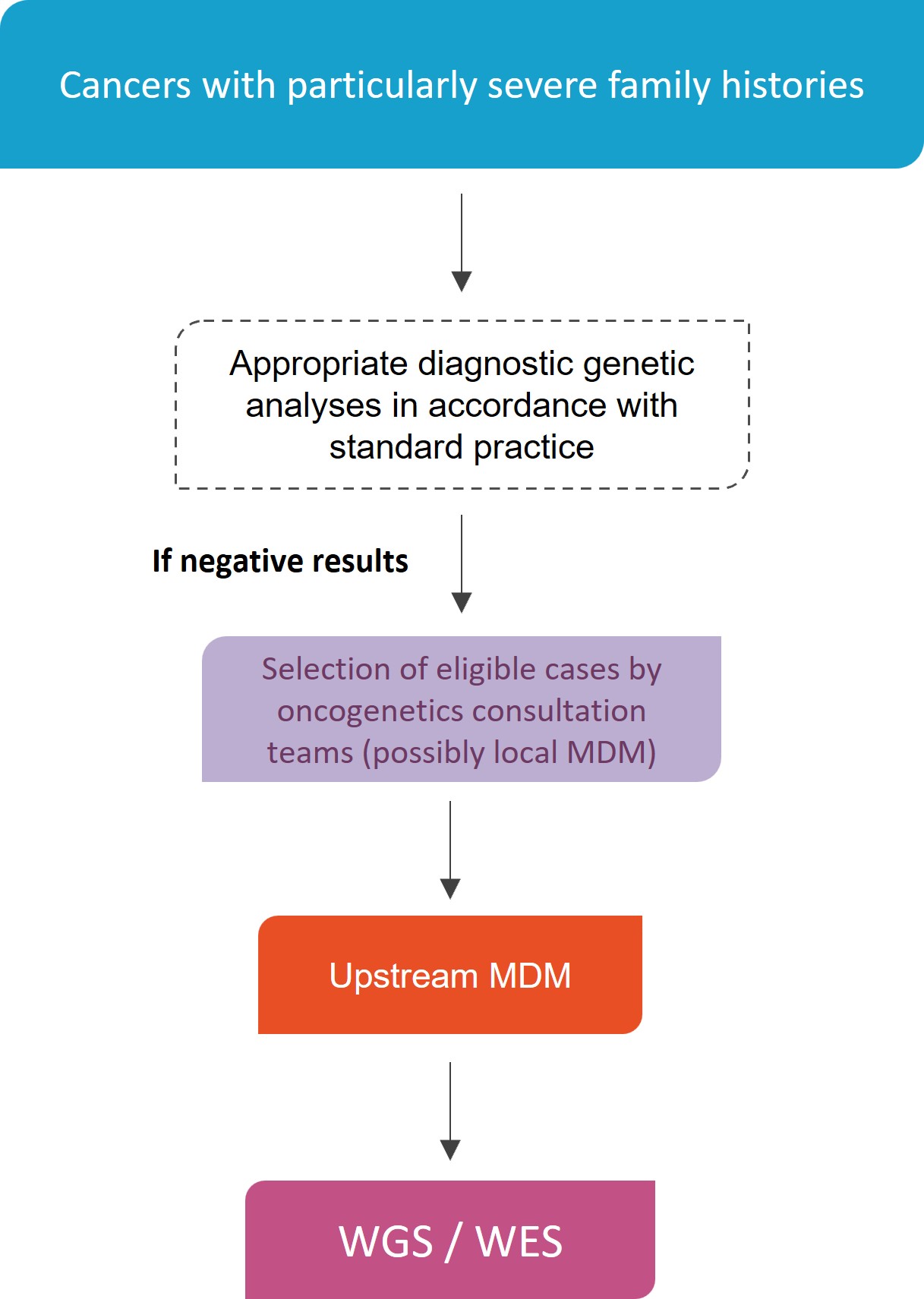 - The patient must be available for a new blood sample and informed that their case will be presented at a multidisciplinary team meeting.