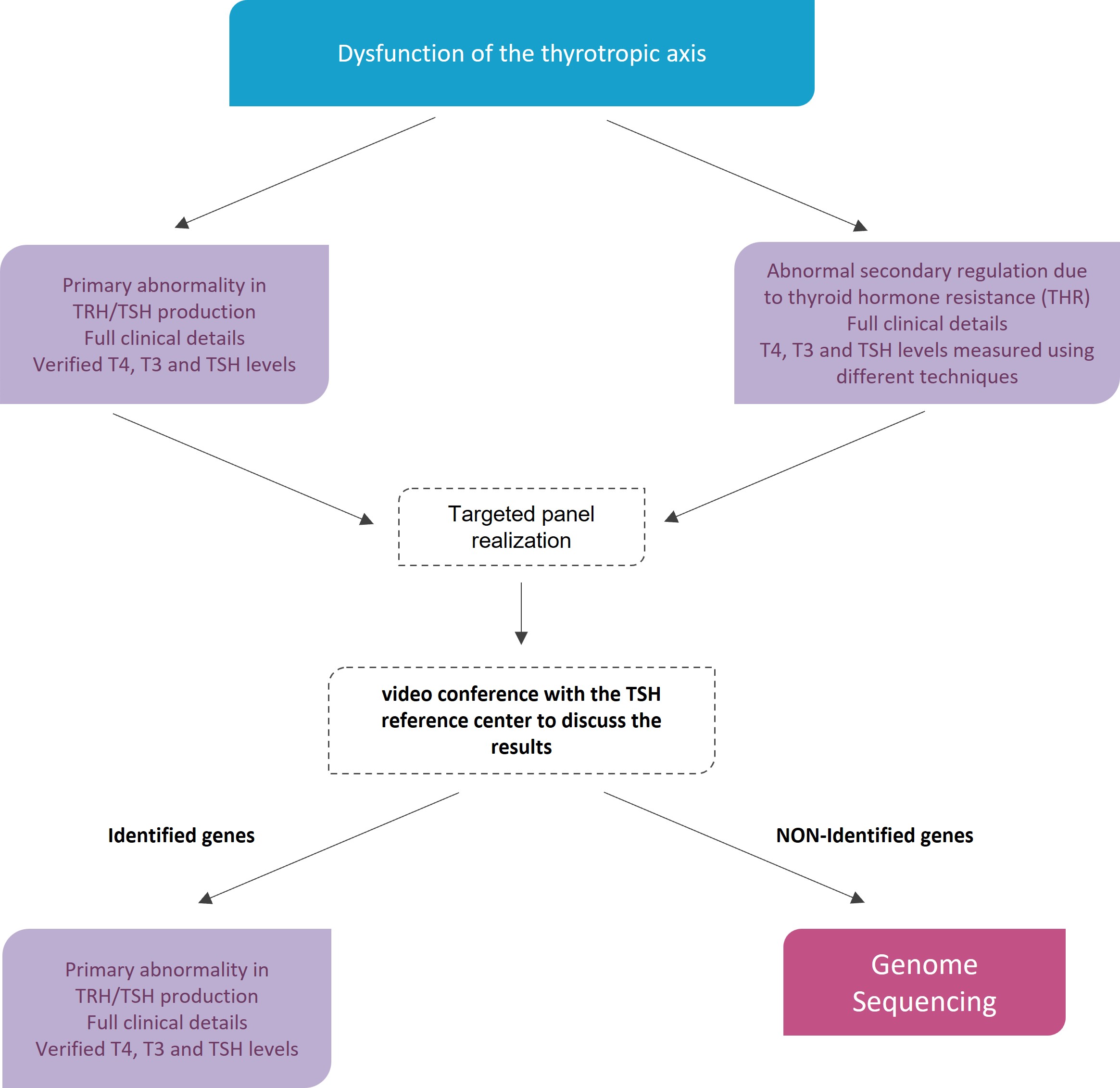 - An abnormality in TRH/TSH regulation, including resistance to thyroid hormones (RTH)