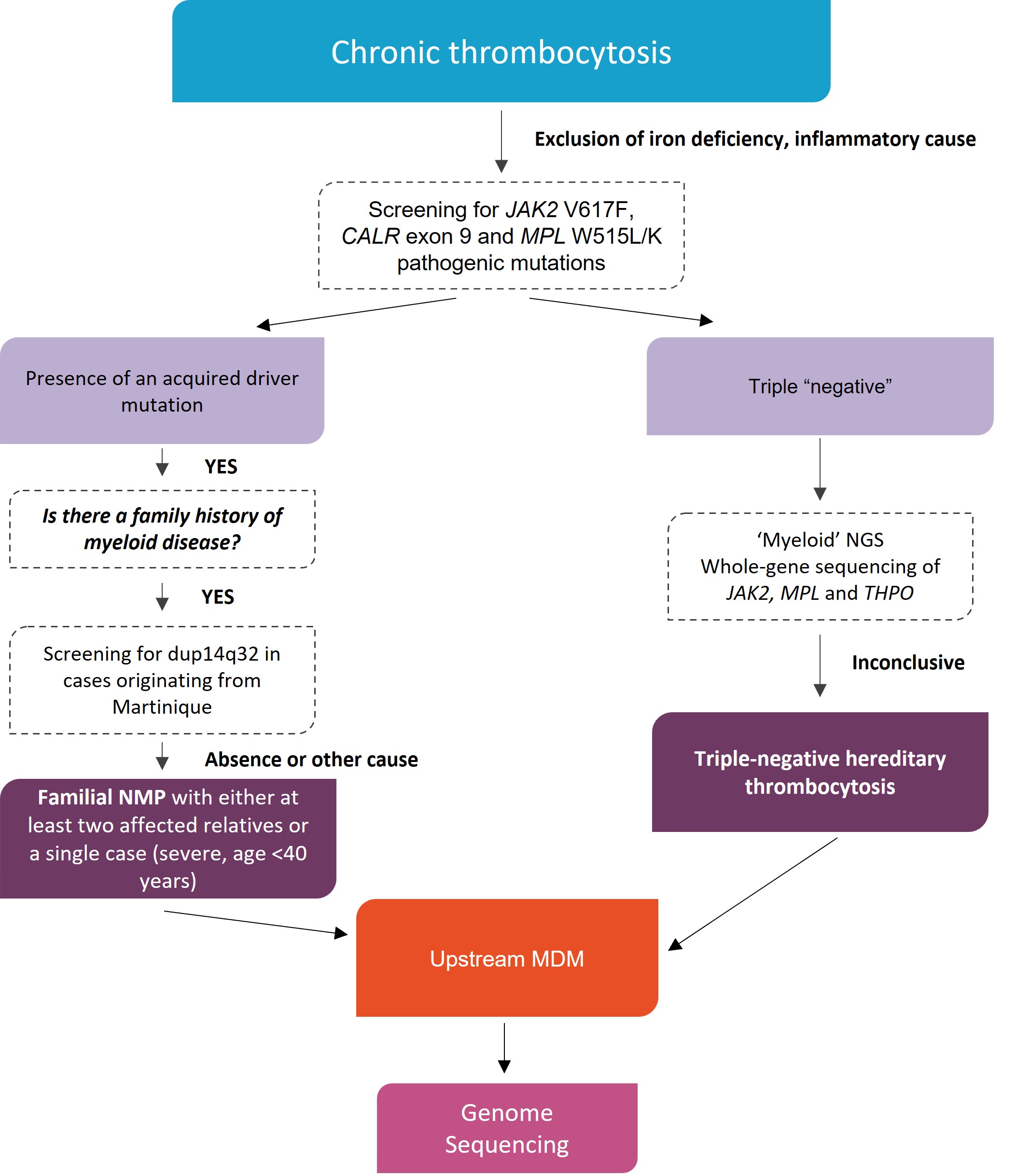• Somatic myeloid NGS panel covering genes frequently mutated in MPNs that do not explain the clinical picture