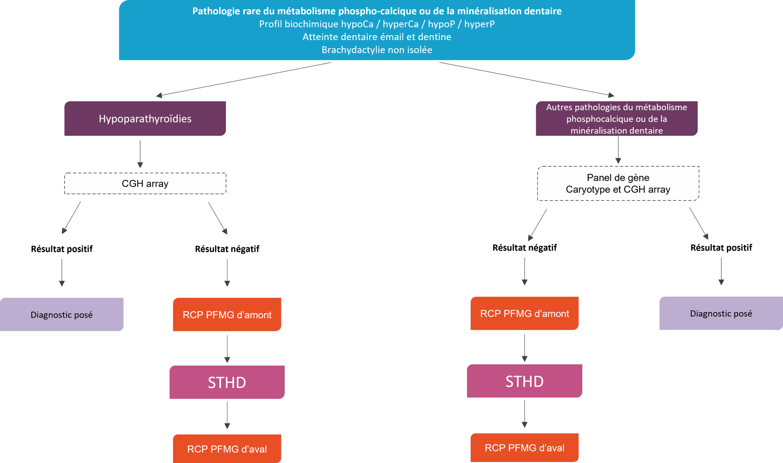 Le panel NGS correspondant doit avoir été fait et considéré comme non contributif. Cependant, le génome en première intention peut être demandé pour les hypoparathyroïdies, après exclusion d’une anomalie chromosomique par CGH array.