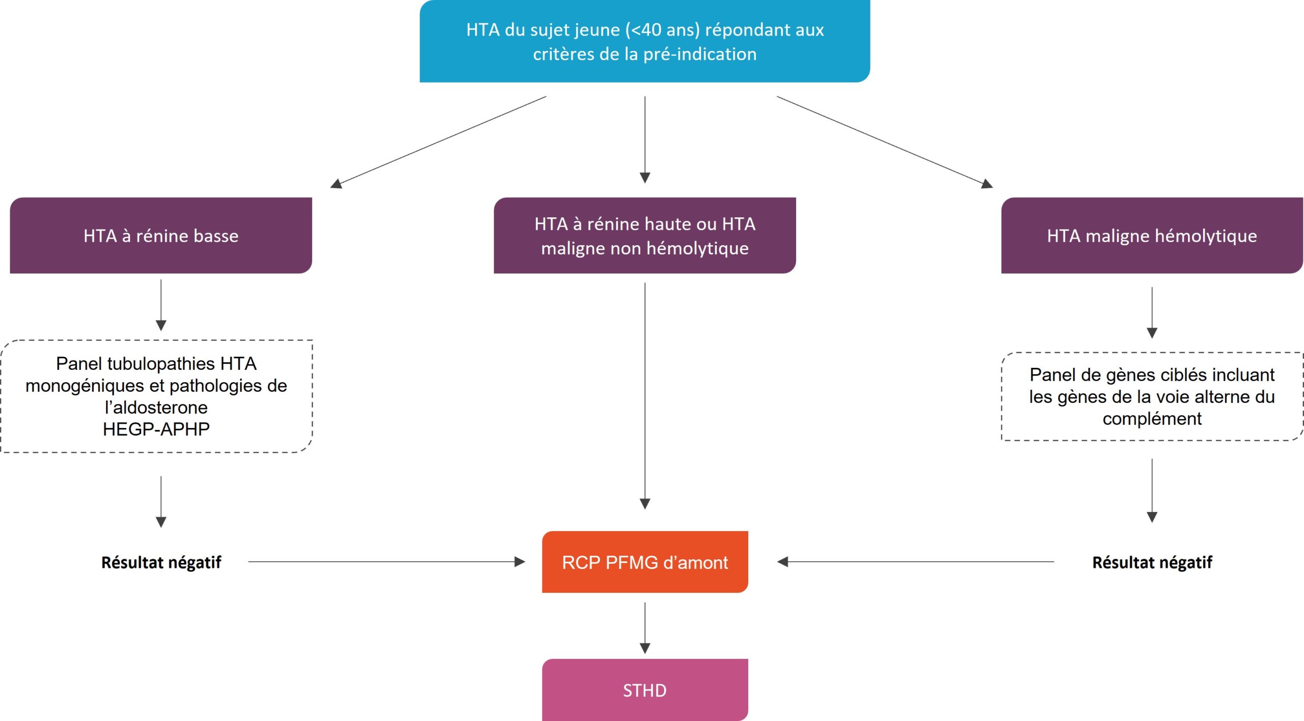 - Critères familiaux : HTA précoce (< 40 ans) ou sévère chez un apparenté du 1er degré, ou événements cardiovasculaires prématurés et disproportionnés par rapport aux facteurs de risque habituel avant 60 ans (AVC, insuffisance rénale terminale inexpliquée)